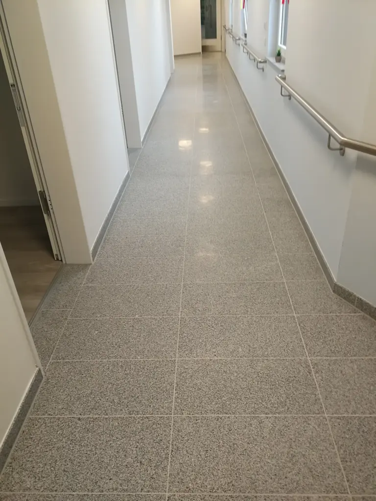 An der Germaniastraße in Essen entstand eine moderne Wohnanlage inklusive Apotheke, bei der wir die hochwertigen Treppenhäuser aus langlebigem Granit realisiert haben. Die geschliffenen Granitoberflächen in Treppenhäusern und Fluren setzen ein elegantes, pflegeleichtes und zeitloses Gestaltungselement, das den exklusiven Charakter der Anlage unterstreicht.