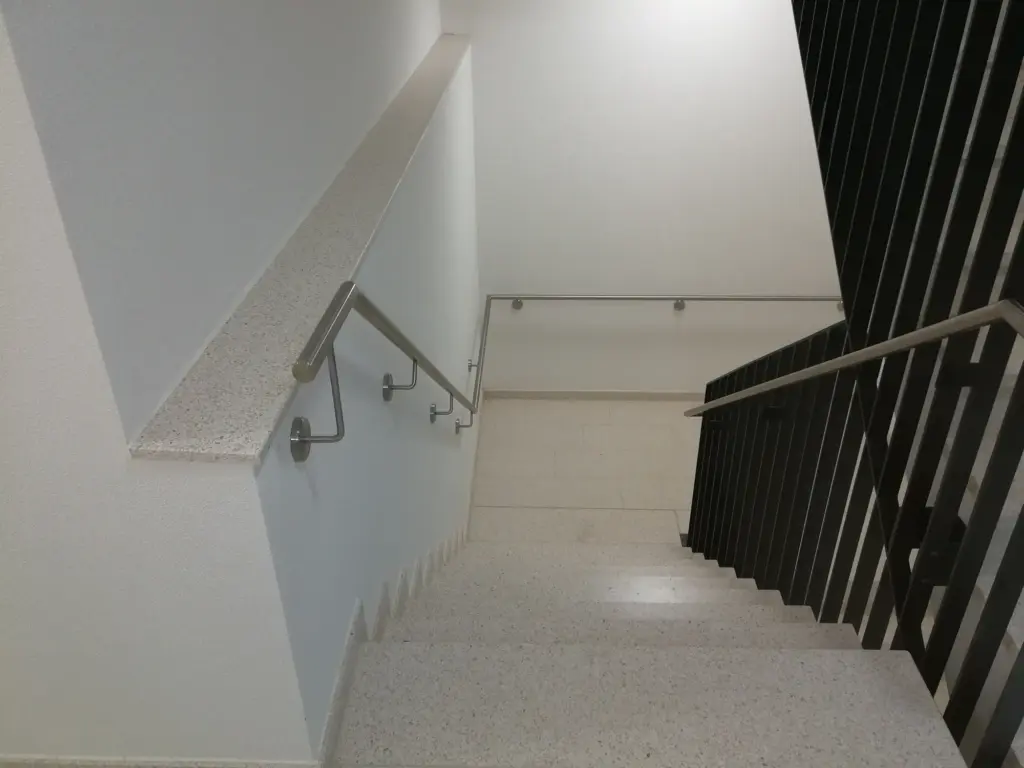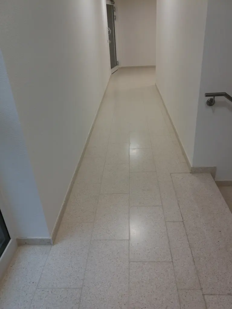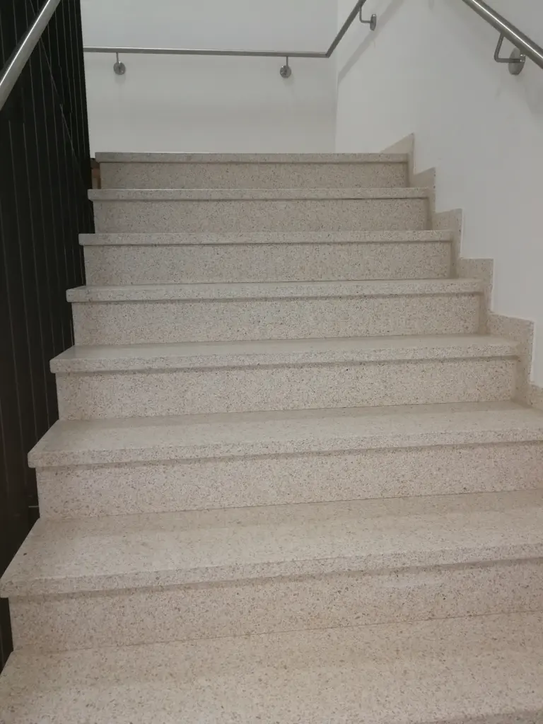 Im modernen Bürogebäude in der Hachestraße, Essen, realisierten wir ein hochwertiges Treppenhaus aus Betonwerkstein. Verwendet wurde der Betonwerkstein Nr. 93.00 „Bono“ der Firma Euval mit geschliffener Oberfläche.